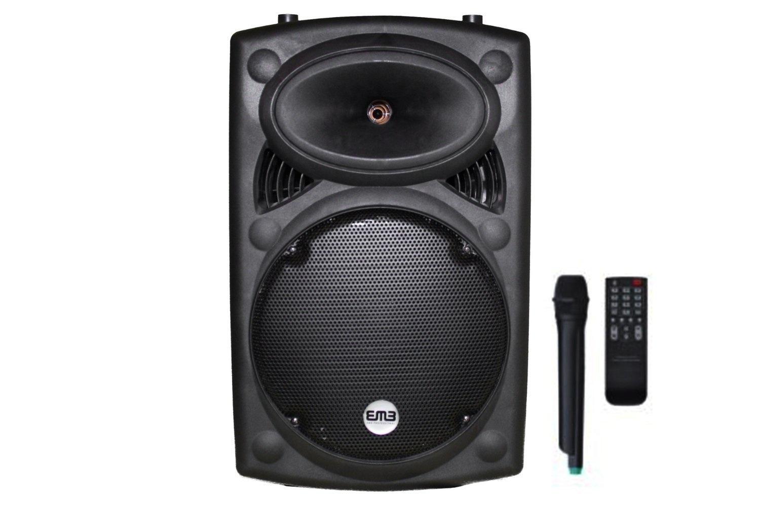 EMB PKL15 + Speaker Stand - 1700W 15" PA Rechargeable Speaker System w/ LED Lights - Built-in Bluetooth/SD/MMC/USB/Guitar Jack - MP3/WAV/WMA Playable + Wilress Microphone - FOR HOME KARAOKE PARTY DJ ENTERTAINMENT